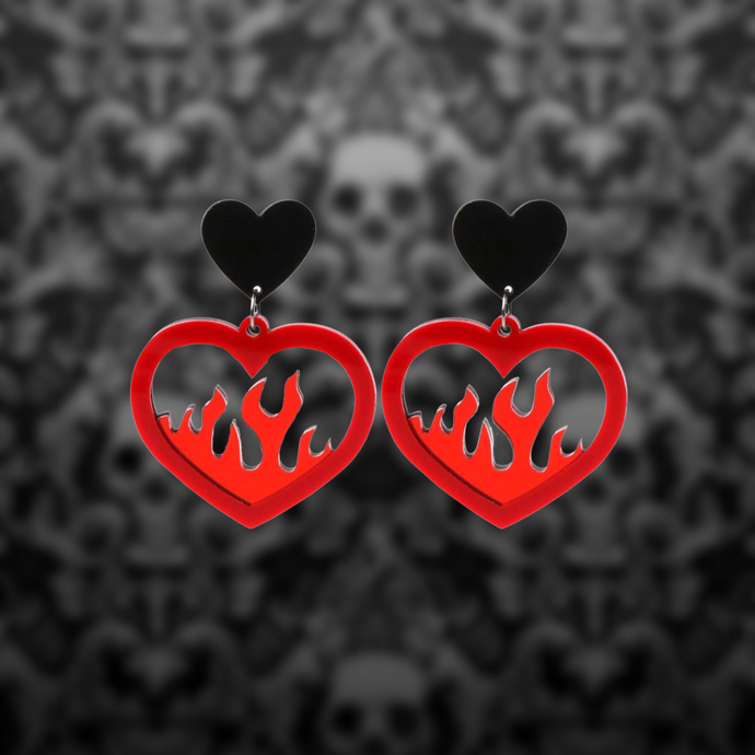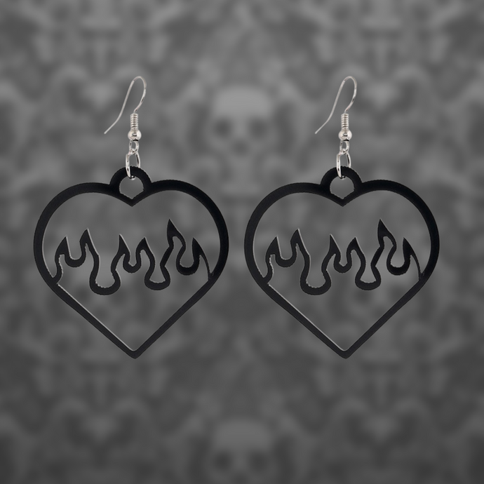Black heart shaped fire earrings.