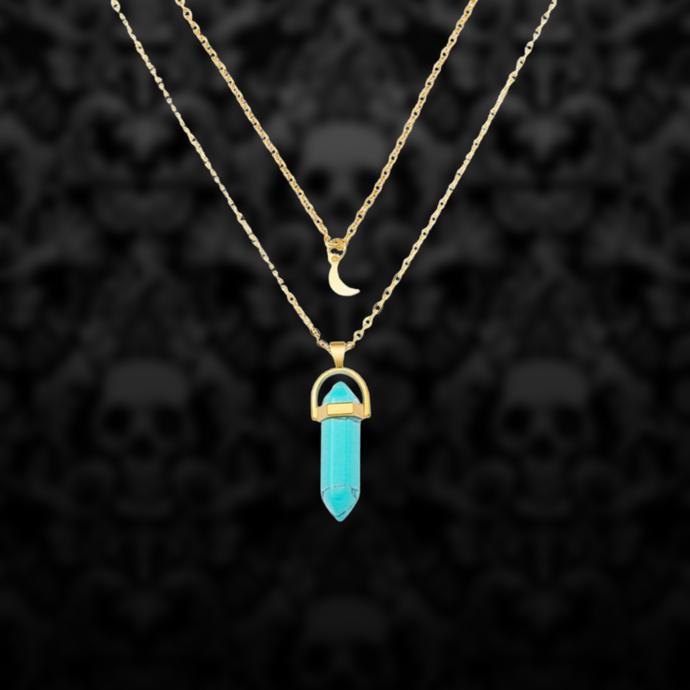 Turquoise Crystal, Moon Charm Necklace