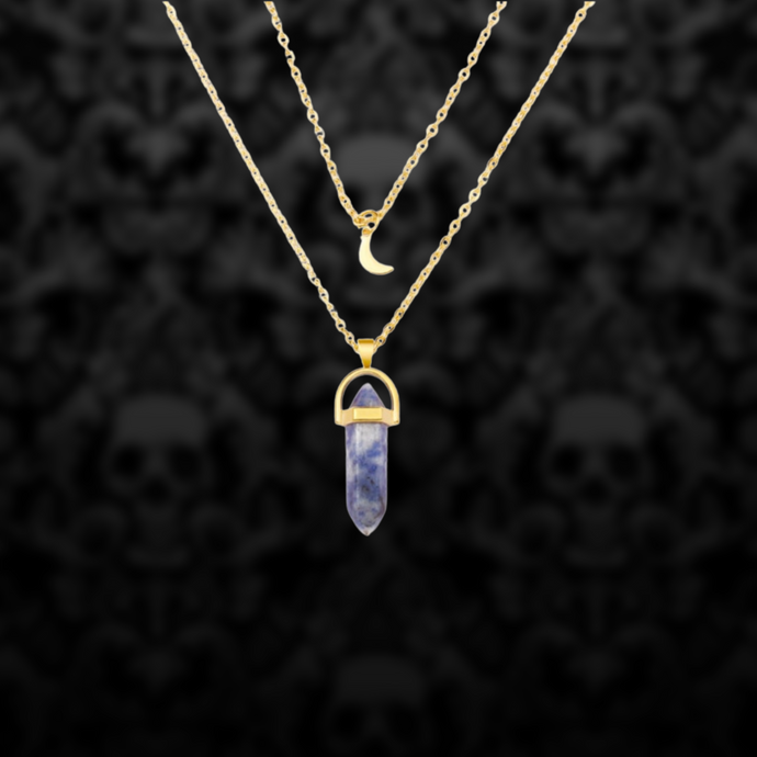 Dark Blue Crystal & Moon Charm Necklace