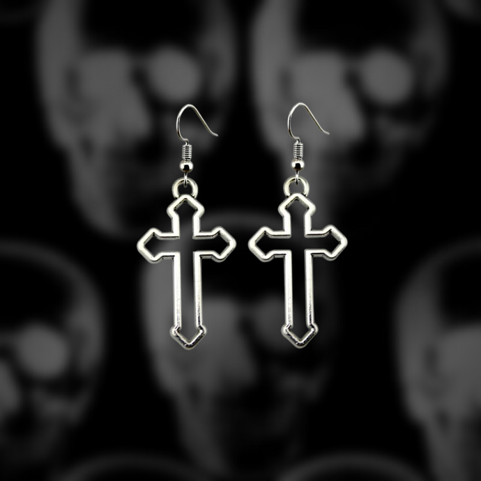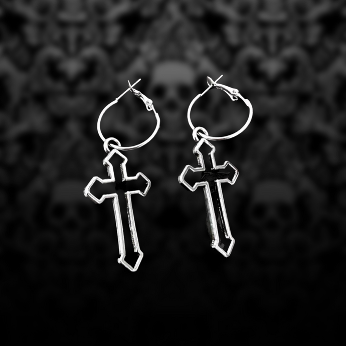 Silver Cross Hoop Earrings