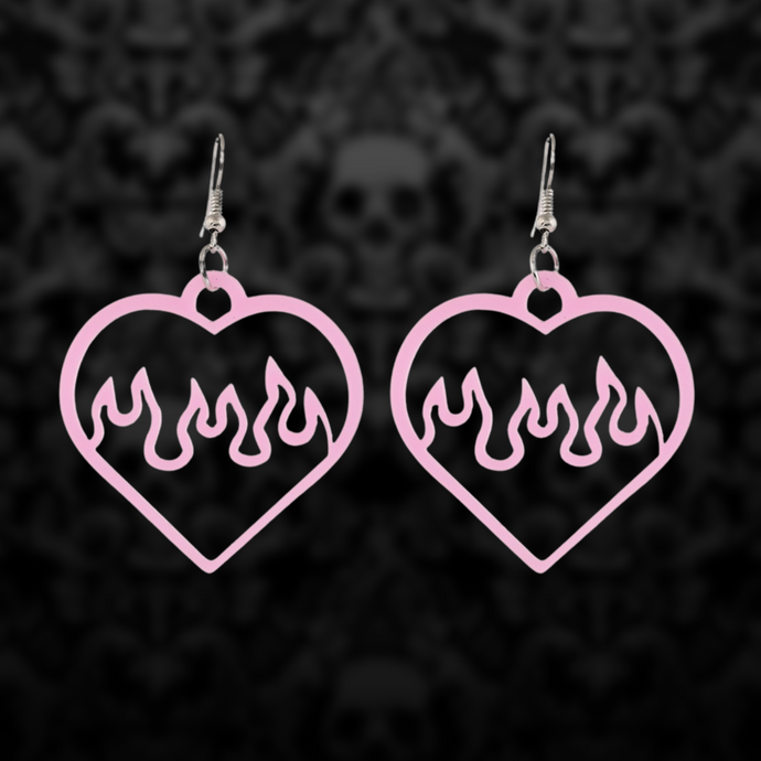 Pink heart shaped fire earrings.